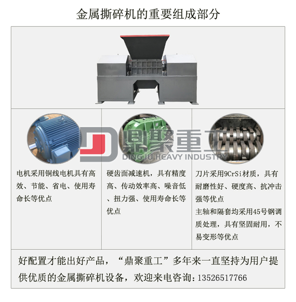 金屬撕碎機是一款用于對廢舊金屬進行粗破的機械設備,可以對汽車殼、摩托車、自行車、彩鋼瓦、油桶、鋼筋、鋼絞線、金屬壓塊、鐵皮、角鐵、槽鋼等金屬物料進行撕碎,具有撕碎力度大,產量高,噪音小等優(yōu)點。